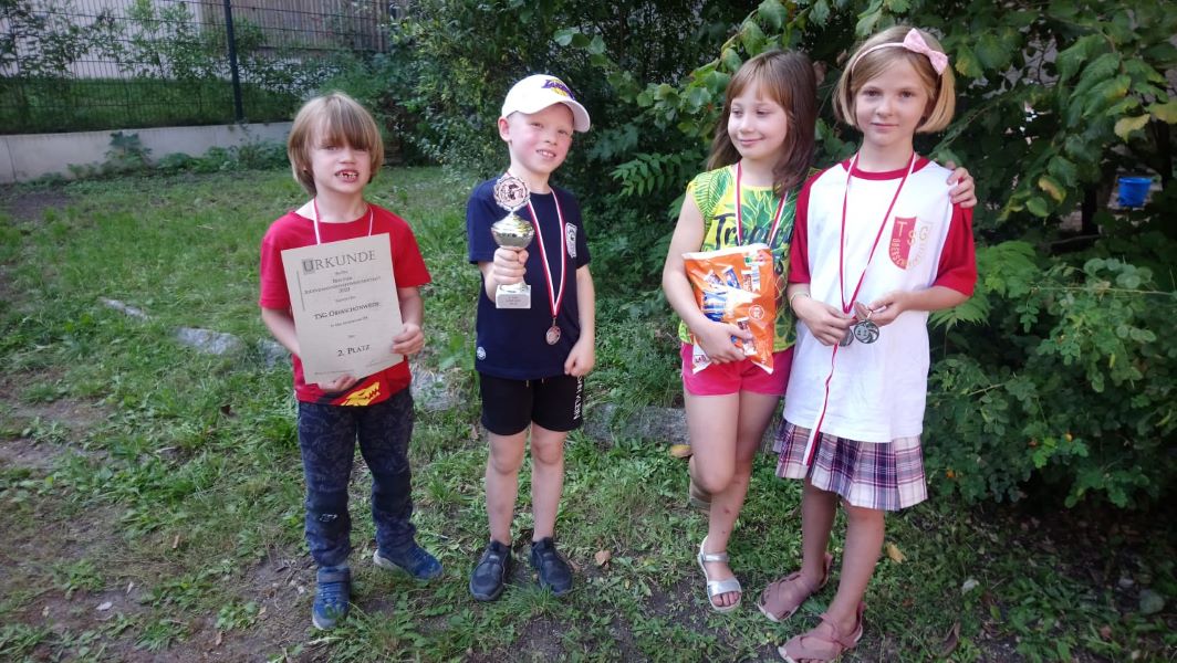 In der U8 und U10 nahmen wir mit jeweils zwei Teams teil und wollte bei der Titelvergabe gerne ein Wörtchen mitreden. Trotz des Abgangs unseres stärksten Spielers vor den Sommerferien wurde unsere U8-1 Elian (letzte Woche erst sieben geworden), Maila, Maximilian und Oleksandra etwas überraschend noch immer auf Platz der Setzliste geführt. In den ersten beiden Runden machte das Team seiner Favoritenrolle auch alle Ehre, gewann mit 4:0 und 3:1 gegen Zehlendorf und Zitadelle – nur Elian musste sich in Runde 2 dem DEM-Teilnehmer Mark Chupikov geschlagen geben. Den folgenden Showdown um Platz 1 gegen Mitfavorit Weiße Dame hätten wir uns sehr viel enger gewünscht – nur Maila schafft ein halbes Pünktchen. Der spätere Dritte Empor Berlin und die Schachfreunde Nordost werden zwar wieder mit 4:0 bezwungen, aber WeDa lässt keine Luft mehr ran und somit wird das Team Berliner Vizemeister U8.