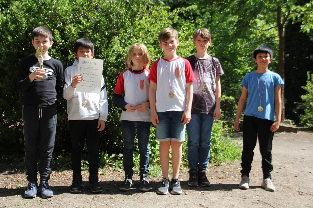 Im Vergleich zum ersten Wochenende rückte in der fünften Runde gegen Chemie Weißensee erstmals Hannes in die Mannschaft und führte sich glänzend ein. Auch Karl und Khoi Vu gewannen sehr schnell. Schmerzhaft ist Khoi Bachs Niederlage gegen den dreihundert Punkte schwächeren U10-Kaderspieler Daniel Stein, aber wegen der sehr komplexen Stellung konnte man ihm auch nicht allzu viele Vorwürfe machen. Mit dem gleichen Ergebnis (3:1) für die Mannschaft und auch der gleichen Punktausbeute für unsere Jungs bezwang man das sonst so gefürchtete Team von SC Weiße Dame, das aber völlig von der Rolle war und oft auch nicht komplett antrat. Wieder erwischte es Bach Khoi, bei dem ein paar Tränen floßen, nachdem er seine gewonnene Stellung gegen den neuen Berliner Einzelmeister Aakrit Seth mit einem unüberlegtem Zug weggeschmissen hatte. Zum Trost konnte vorzeitig der U12-Mannschaftstitel gefeiert werden, denn unser Schlußrunden-Gegner Kreuzberg hatte weiter Federn lassen müssen und konnte uns, wie auch alle anderen Teams, nicht mehr einholen. Am Sonntag konnten auch die Kreuzberger mit 3:1 bezwungen und der 14:0-Durchmarsch perfekt gemacht werden. Kleiner Wermutstropfen trotz aller mannschaftlichen Konstanz war, dass es in allen sieben Runden keinen klaren Sieg gab und immer mindestens eine Partie verloren ging. Zum Abschluss traf es erstmals Karl, der sich sehr überraschend in komplexer Stellung Oleksandr Isaichykov geschlagen geben musste. Entsprechend sieht das Turnier für unsere Stammspieler Khoi Bach (3 aus 7 Punkte), Karl (4 aus 6) und Khoi Vu (5 aus 7) nicht ganz so gut auf dem DWZ-Konto aus. Viel besser sieht es da auf den häufig durchgewechselten Positionen aus – Hannes (3 aus 3), Leo und Daniel (beide 1,5 aus 2) sowie Adrian (1 aus 1) sind alle im DWZ-Plus und tragen einen großen Teil zum Erfolg bei. TSG ist neuer Berliner Meister U12 – Herzlichen Glückwunsch!!!