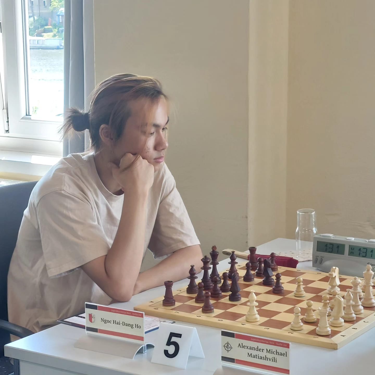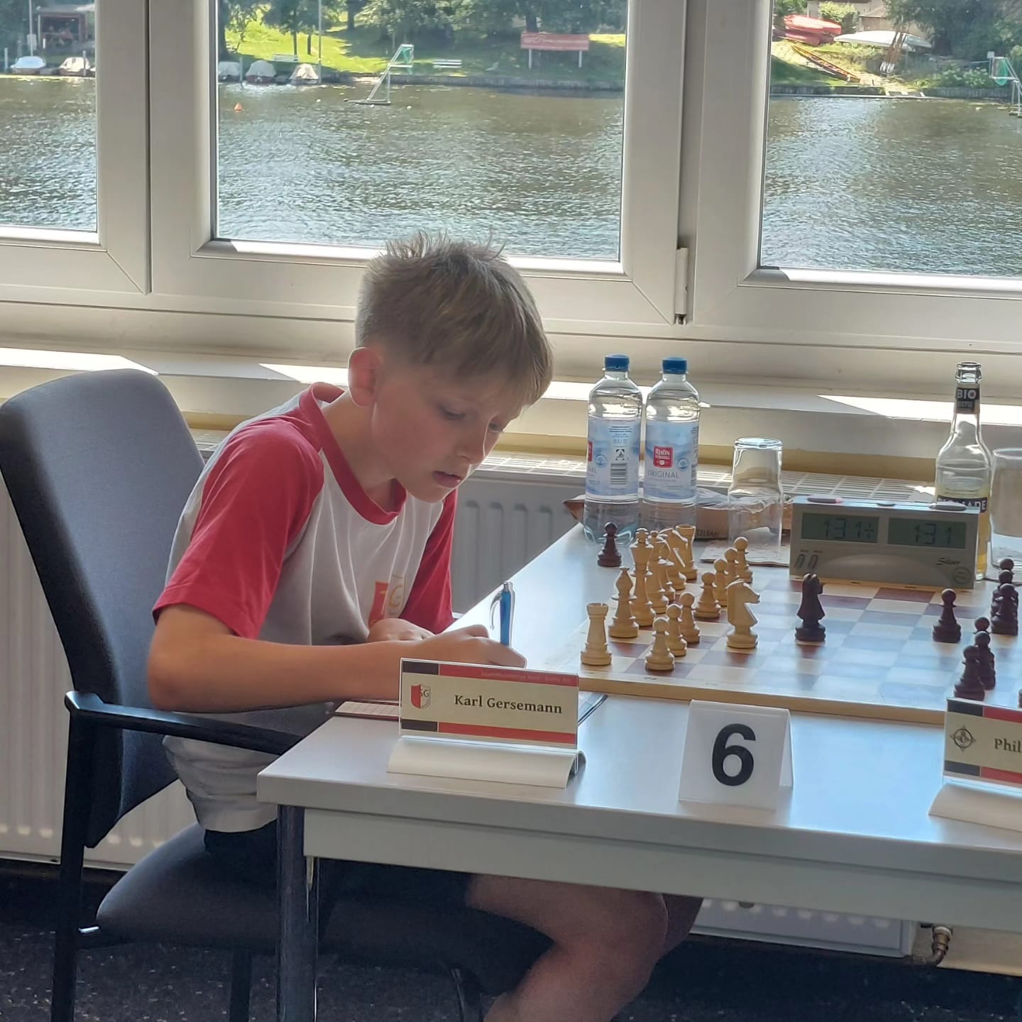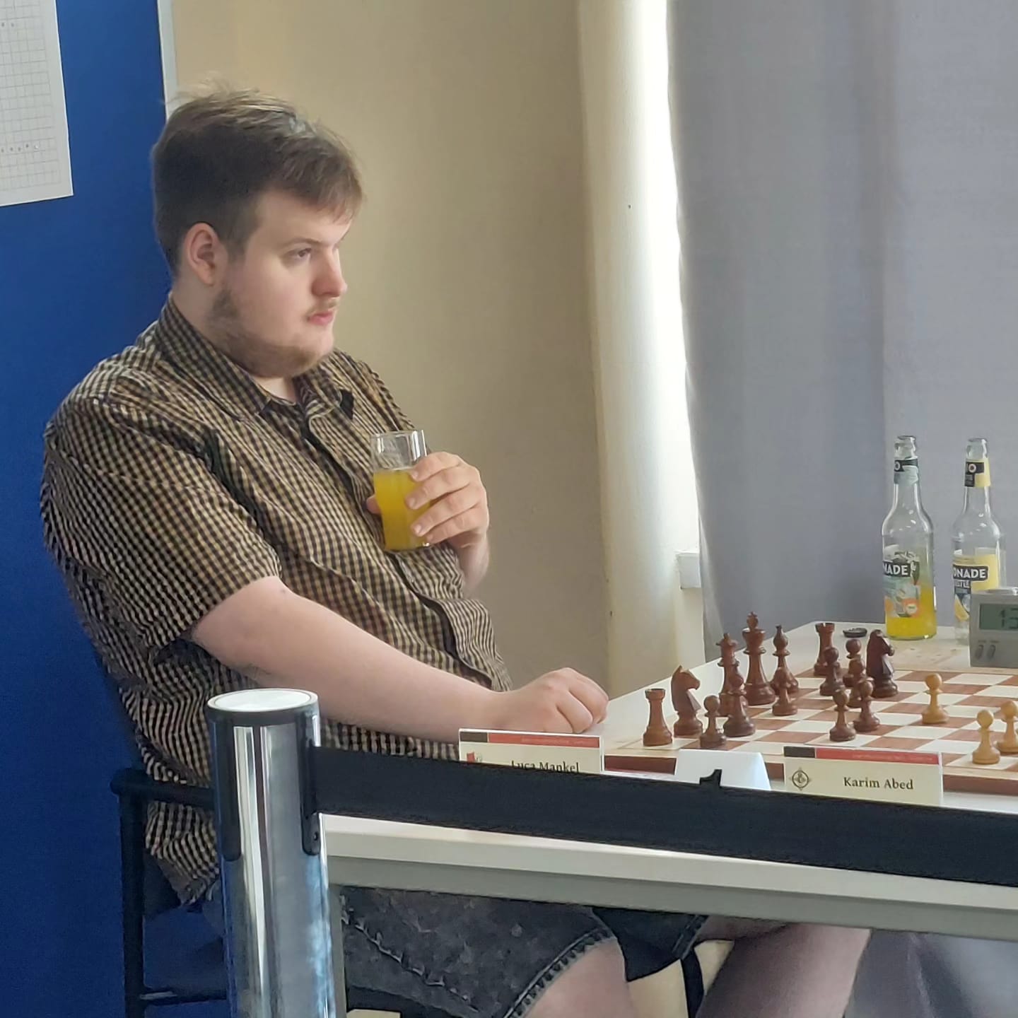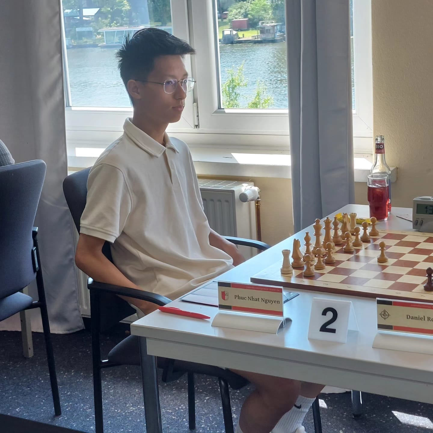 Am 29.6.2024 fand der besagte Mannschaftskampf statt. Luca, Phuc, Chinguun, Pavel, Hai-Dang und Karl sollten unser Sommermärchen in Erfüllung bringen. Mit Lothar Oettel als Schiedsrichter, Hasan als Mannschaftsleiter und Georg Richter als tatkräftigen Unterstützer fing der Mannschaftskampf also an. Dankenswerterweise hat sich Georg um Getränke, Snacks und, bei diesen Temperaturen auch wichtig, um Eiswürfel gekümmert.