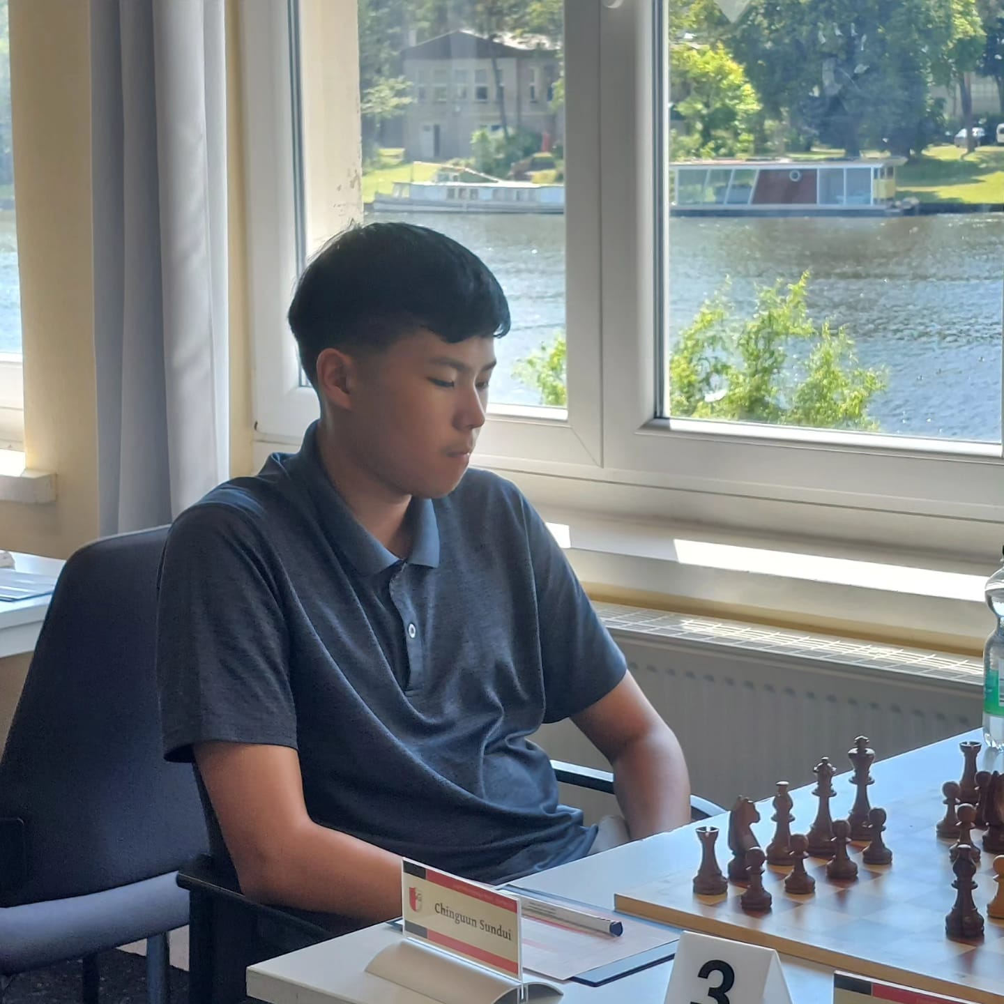 Als längstes spielte heute Chinguun und dies auch souverän. Nach der Eröffnung hatte Chinguung zwar weniger Raum, aber einen Stellungstypen, der ihm sehr bekannt war. Und dies zahlte sich auch aus. Mit einer kleinen Taktik gewann Chinguun 2 Bauern und verwertete diese Stellung sicher. Auch Chinguun beendet die Saison mit einer guten Punkteausbeute, auch wenn ihm leider auch ein DWZ-Minus bevorsteht.