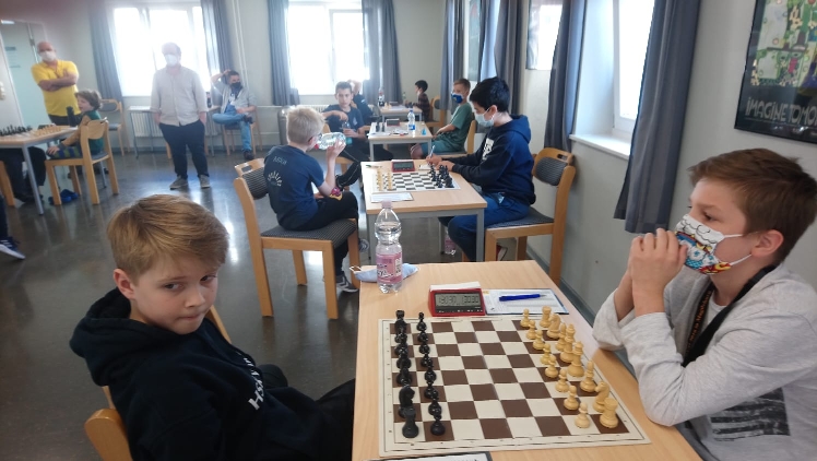 Die Auslosung zur Nachmittagsrunde ließ allerdings lange auf sich warten. Erst 45 Minuten vorher stand der Gegner fest. Der Hamburger SK, bisher mit weißer Weste wartet wieder ganz oben diesmal an Tisch 1 auf uns. Gut, dass unser mitgelaufenes Programm, den richtigen Gegner vorausgesagt hatte, und wir dadurch etwas mehr Vorbereitungszeit hatten. Fast alle bekamen diese auch aufs Brett. Zugverwechlsungen sind aber leider immer noch keine Ausnahmen. So lernte Theo beispielsweise den Zug h6 in seinem Engländer schätzen. Trotz allem gewann er später eine Qualität, überließ dem Gegner aber dann einen gedeckten Freibauern und opferte schließlich die Qualität für zwei Bauern zurück. Diese waren leider isolierte Doppelbauern, die im ungleichfarbigen Läuferendspiel nur zum Remis führten. Übertroffen wurde dies aber bei Weitem von der Dramatik in Khois Partie. Sein Gegner übersah im gefühlten 10. Zug eine Springergabel und verlor die Dame für einen Läufer. Damit sollte die Partie eigentlich gelaufen sein. Aber wie auch immer schaffte es sein Gegner, die Stellung so zu verkeilen, dass die schwarze Dame keine Rolle spielte und stattdessen die weißen Bauern an einem Flügel heranrollten. Khoi schaffte es einfach nicht die richtigen Hebel zu finden, um die Stellung zu öffnen und die Dame frei zu lassen. Einen weiteren Figureneinsteller verkraftete die Stellung nicht. Ein bitteres Ende, auch für die Mannschaft. Denn Livius konnte sich auch ein Remis erkämpfen, wodurch wir zumindest ein Unentschieden hätten erreichen können. Das hätte schon zur Qualifikation für die Deutsche Vereinsmeisterschaft bedeuten können.