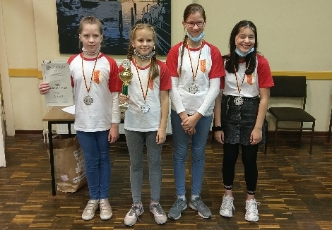 TSG 1 ging in der reinen U12-Besetzung Veronika, Rubina Arnold (Gastspielerin von RW Neuenhagen), Madiha und Adel mit etwas Abstand auf den Topfavoriten Weiße Dame 1 als Zweiter der Setzliste ins Rennen. Nach einem standesgemäßen Auftaktsieg gegen TuS Makkabi Rostock wartete gleich in der zweiten von insgesamt nur vier Runden der Titelaspirant. In einem engen Kampf musste sich die Mannschaft schließlich mit 1:3 geschlagen geben und fand sich vorerst auf Platz drei wieder, noch hinter der ebenfalls hochgehandelten Borussia aus Friedrichsfelde. Gott sei Dank waren die Borussinnen nur an den ersten beiden Brettern superstark besetzt und ließen Federn, zum direkten Vergleich kam es nicht. Noch besser war natürlich, dass unser Team die beiden letzten Runden gegen Torgelow und mit einer Riesenportion Glück auch gegen Weiße Dame 2 mit 3:1 gewinnen konnte und sich damit Platz 2 sichert. Am beständigsten spielte Madiha (4 aus 4 Punkte), die einen schon länger anhaltenden Lauf hat und sehr starke Partien aufs Brett zauberte. Adel und Rubina holen sich jeweils drei Zähler, ihnen war bei ein paar Fehlgriffen aber anzumerken, dass die Routine nach der Corona-Pause noch nicht wieder da ist. Vroni (1 aus 4) hatte es an Brett 1 mit den stärksten Gegnerinnen zu tun, und leider half ihr auch das Glück nicht weiter. Die kommende DVM-Teilnahme tröstet nach der ersten Enttäuschung aber sicher bald über das verkorkste Turnier hinweg.