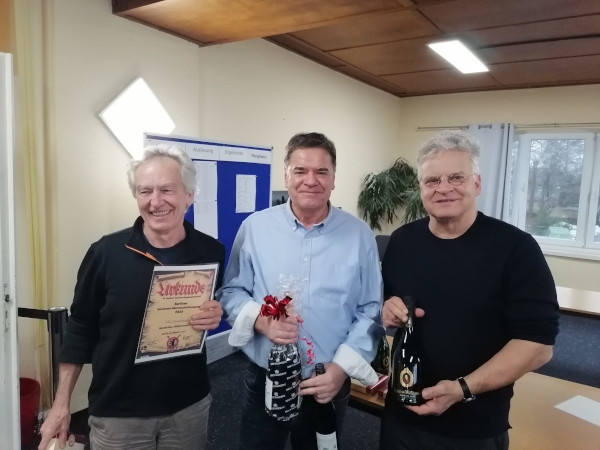Während unsere in diesem Turnier besonders friedfertigen FIDE-Meister Reinhard Postler (5,5 Punkte), Wolfram Heinig und Olaf Raitza (beide 6 Punkte) ihre Partien schnell remis gaben, nutzten die Kreuzberger Verfolger (FM Christian Syré, FM Jürgen Federau und Michael Steiger) ihre Chancen und zogen nach Punkten gleich.